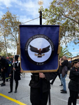Υπό την αιγίδα της «Παμμακεδονικής Ενώσεως Μακεδονικού Αγώνα Ελλάδος-Αυστραλίας» παρήλασαν εχθές στη Στρατιωτική Παρέλαση της 28ης Οκτωβρίου 2025, στη Θεσσαλονίκη, μέλη της «Ελληνικής Ορθοδόξου Νεολαίας-Ε.Ο.Ν.».