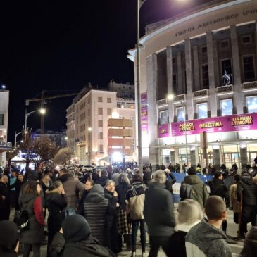 ΕΟΝίτες Θεσσαλονίκης δυναμικά και αποφασιστικά στο πρώτο μέτωπο του χθεσινού συλλαλητηρίου κατά της βλασφήμου, ανιέρου και αντιχρίστου παραστάσεως του δαιμονισμένου Χριστοφόρου Ζαραλίκου υπό τον τίτλο «Και εγώ υπάλληλος είμαι», με διαφημιστική αφίσα τον ίδιο να υποδύεται τον Χριστό με ακάνθινο στεφάνι και την πορφύρα, χλευάζοντας τον Κύριο και Θεό μας.